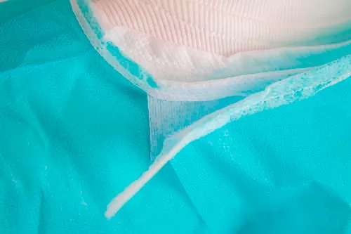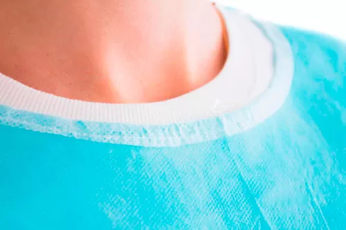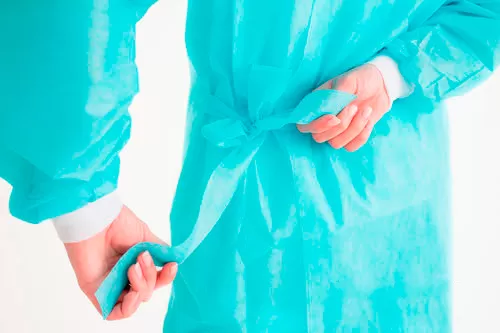 - Фиксатор завязок на стерильном халате позволяет надеть его так, чтобы спина оставалась стерильной.