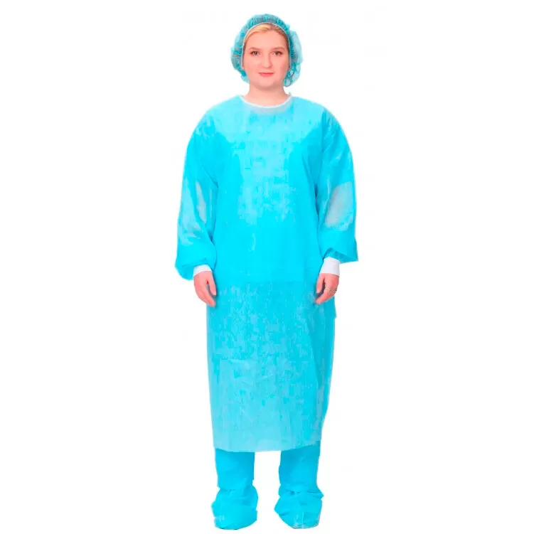 - Халат предназначен для работы с умеренным количеством жидкости. Изготовлен из нетканого материала "спанбонд" плотностью 42 г/м².