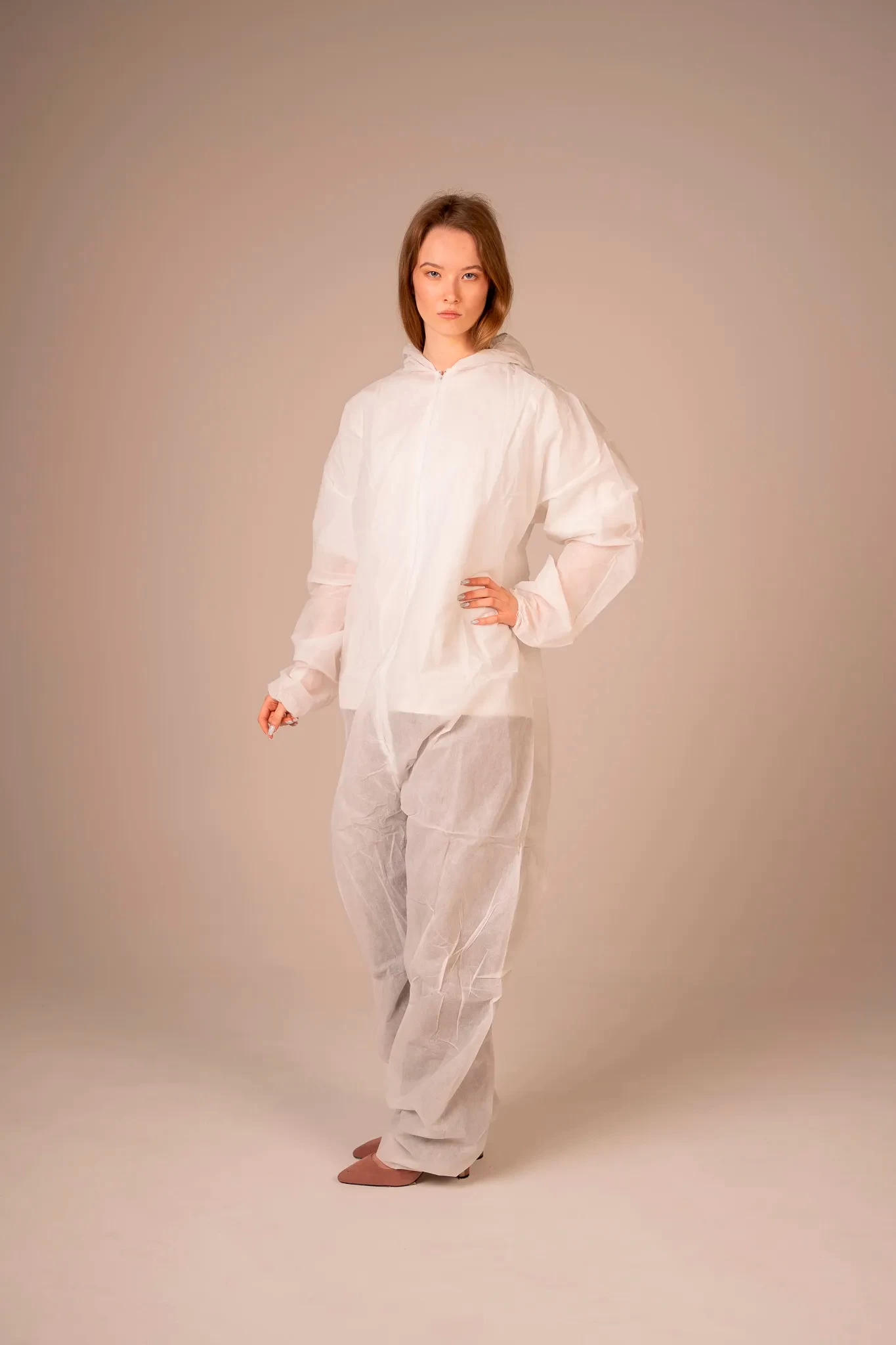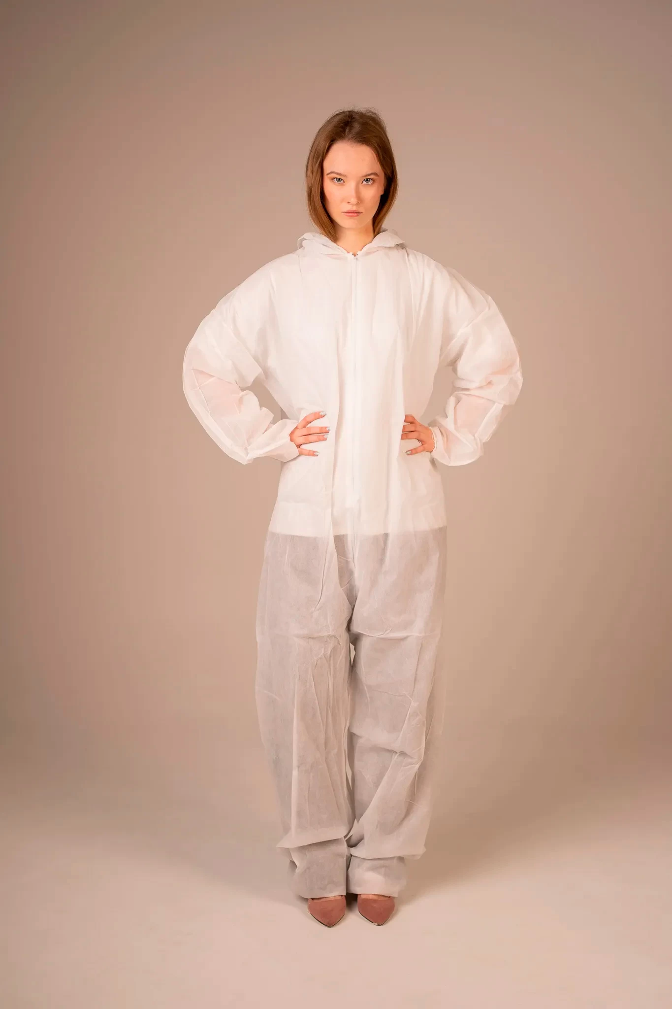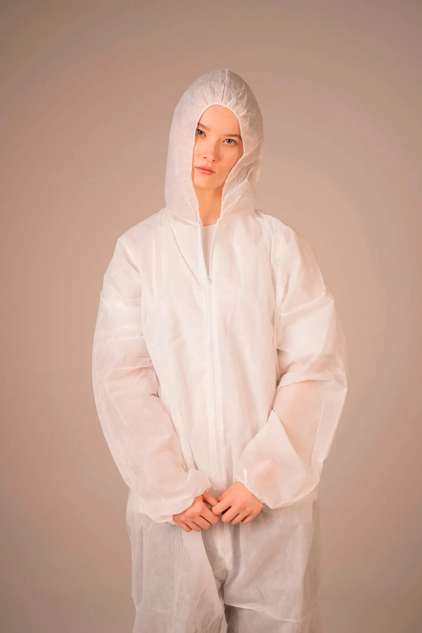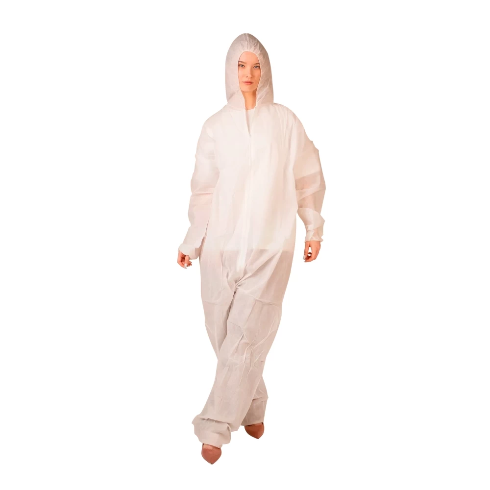 - Комбинезон медицинский одноразовый, изготовленный из воздухопроницаемого первичного нетканого полипропилена, представляет собой защитную одноразовую одежду высокого качества. Он оснащен передней застежкой на молнии, обеспечивающей легкость и удобство при надевании и снятии.