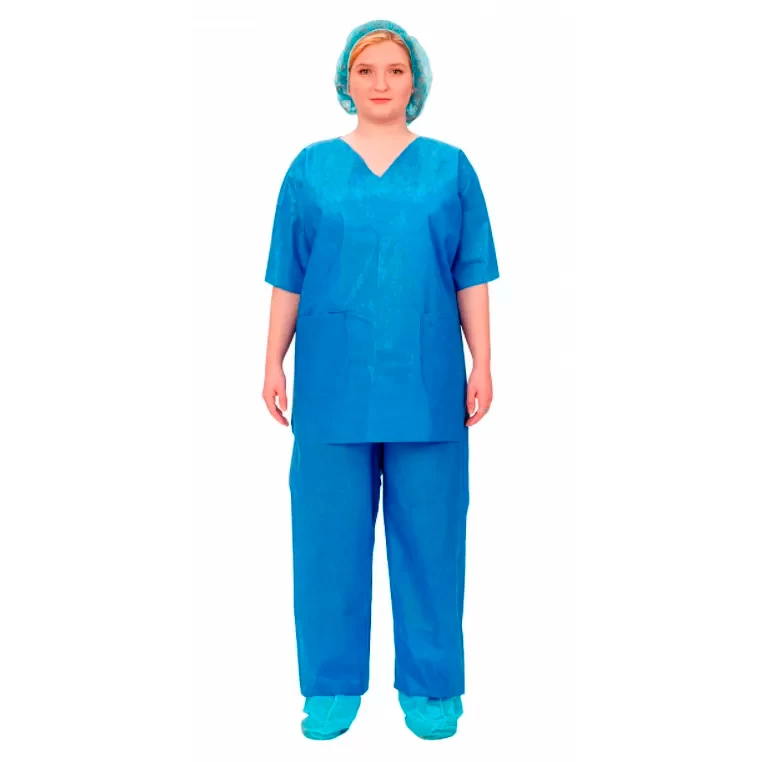 - Изготовлен из плотного и прочного нетканого материала СММС (спанбонд - мелтблаун - мелтблаун - спанбонд) василькового цвета.