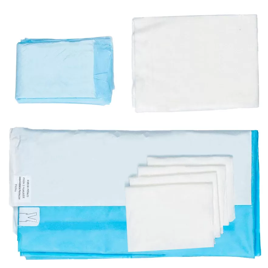- Простыня для кесарева сечения 160х300см с адгезивным вырезом 26х30см с мешком для сбора отделяемого и инцизной пленкой - 1шт.
