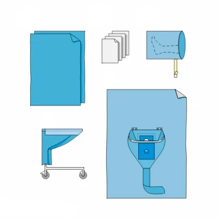- Простыня для артроскопических операций (две эластичные манжеты D — 8 и 6 см; карман для сбора и отвода жидкости) 320х230 см из Tutami adsorb плотность 90 г/м² - 1 шт.