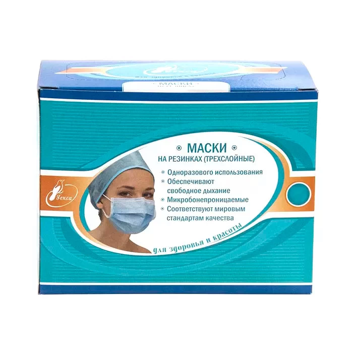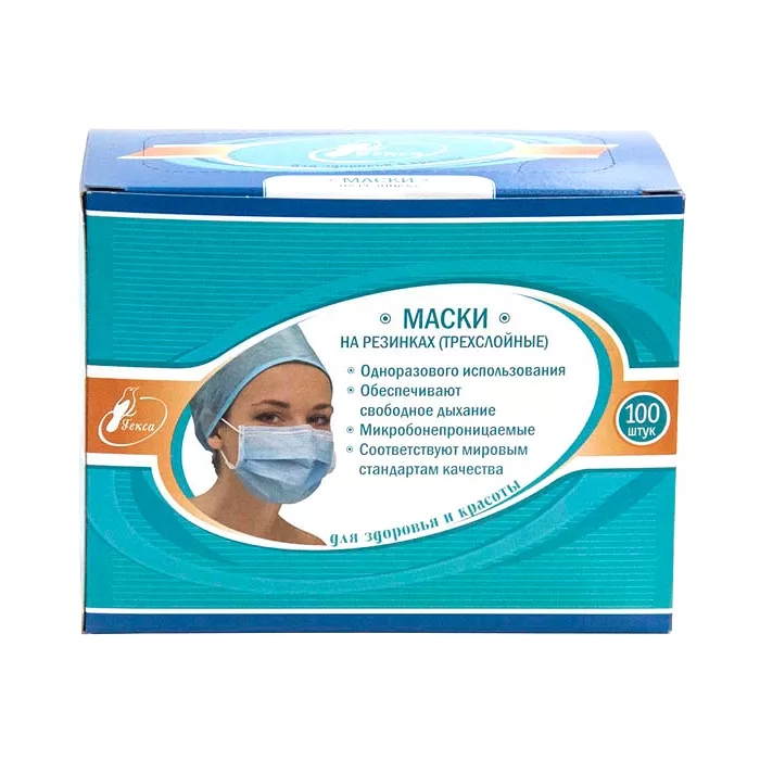 - Маски одноразовые трехслойные гипоаллергенные с фиксатором на переносице.