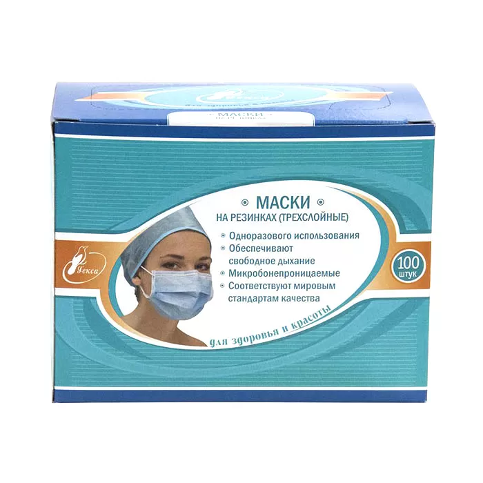 - Маски одноразовые трехслойные гипоаллергенные с фиксатором на переносице.