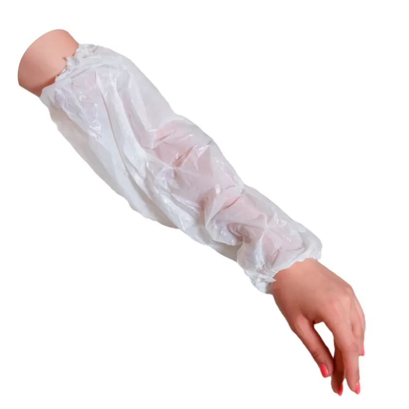 Нарукавники одноразовые изготовлены из смеси первичного полиэтилена высокого давления и низкого давления (ПНД + ПВД).