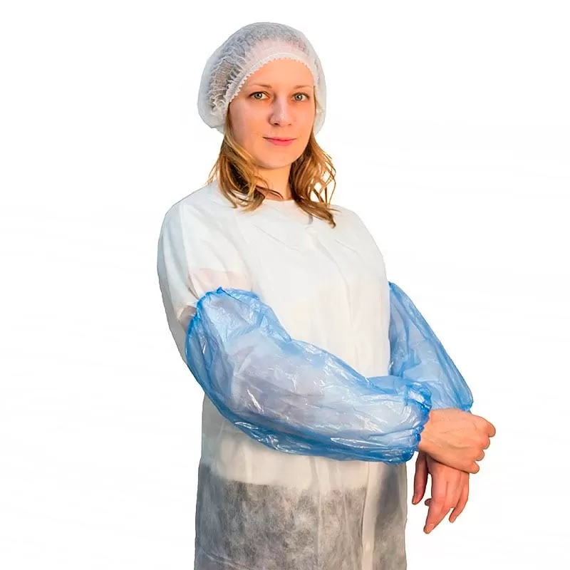 Нарукавники одноразовые изготовлены из смеси первичного полиэтилена высокого давления и низкого давления (ПНД+ПВД).