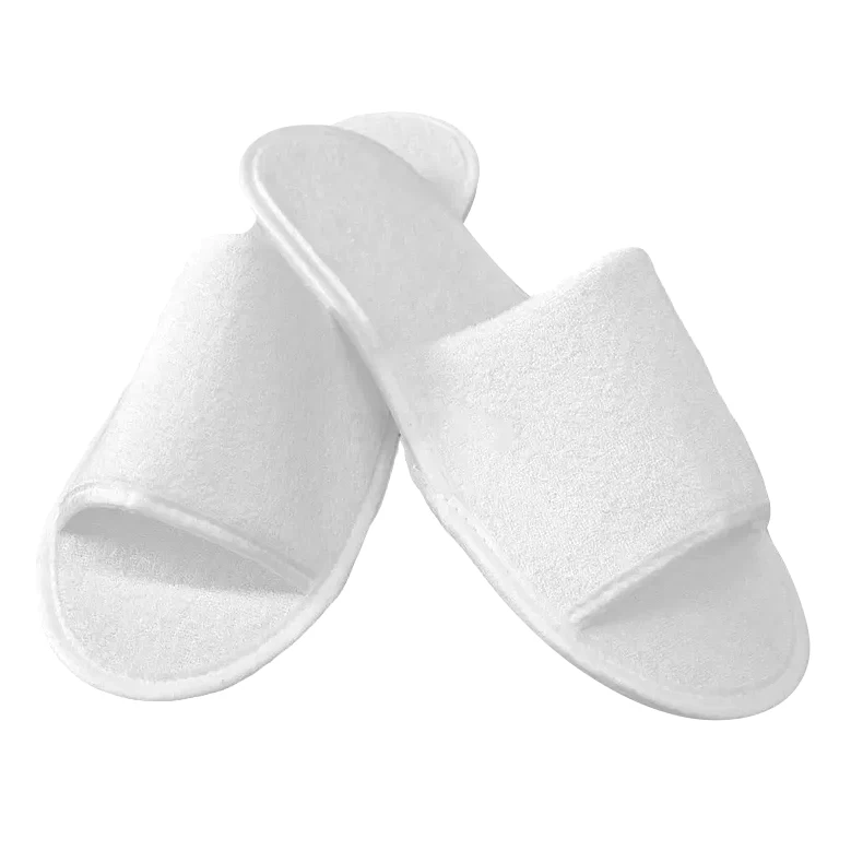 - Тапочки махровые одноразовые с открытым мысом на не скользящей подошве, окантованы текстильной байкой.