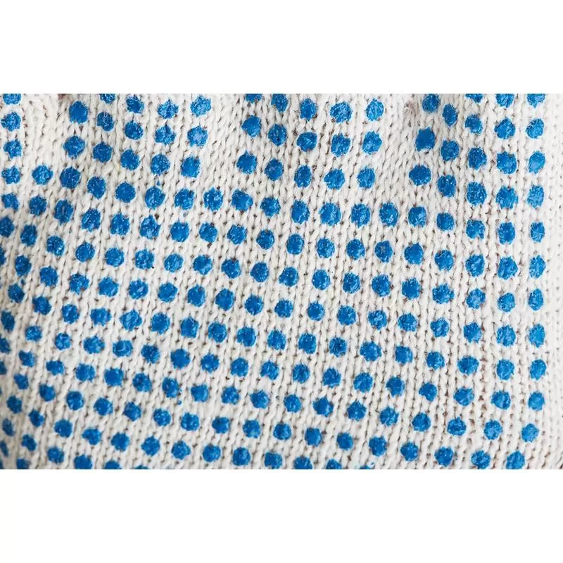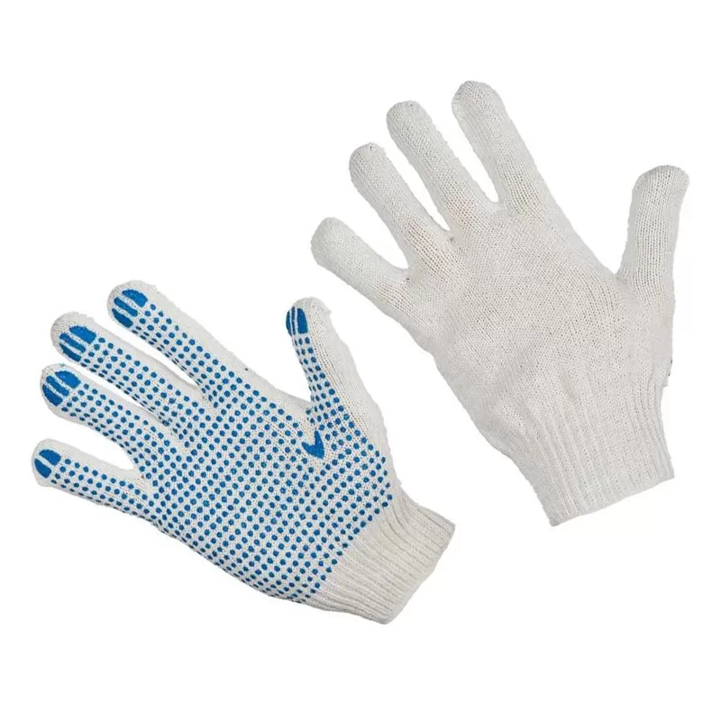 Рабочие перчатки изготовлены из хлопчатобумажной пряжи с покрытием из поливинилхлорида с нанесением рисунка на внутреннюю сторону перчатки.