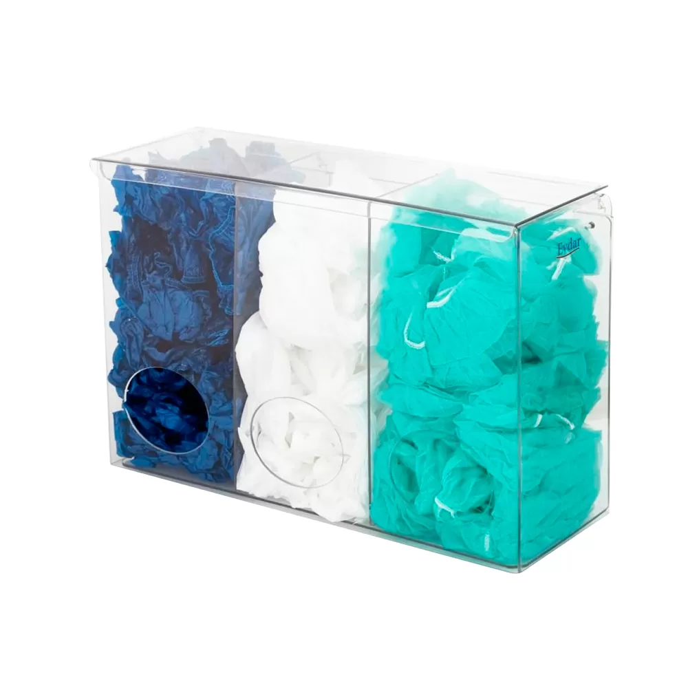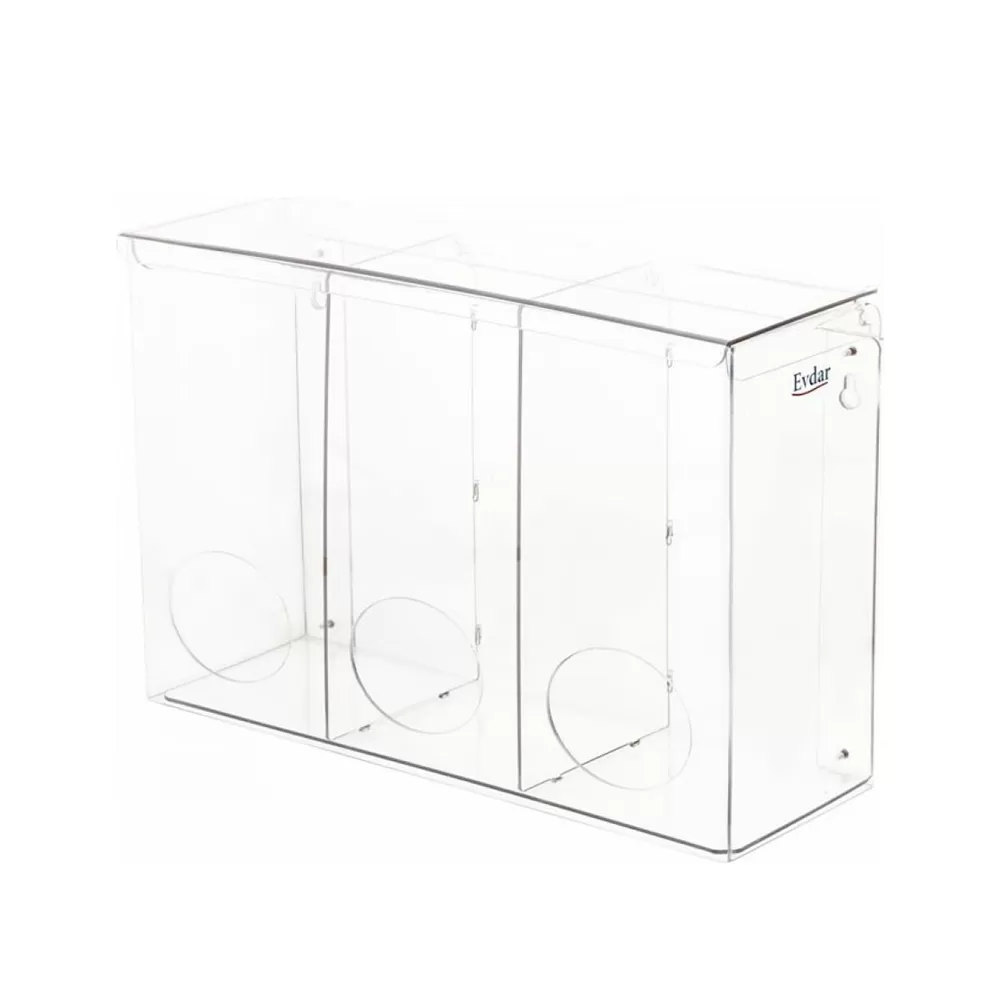 - Диспенсер для одноразовых СИЗ Evdar трехсекционный D3020 изготовлен из ударопрочного прозрачного пластика - поликарбонат.