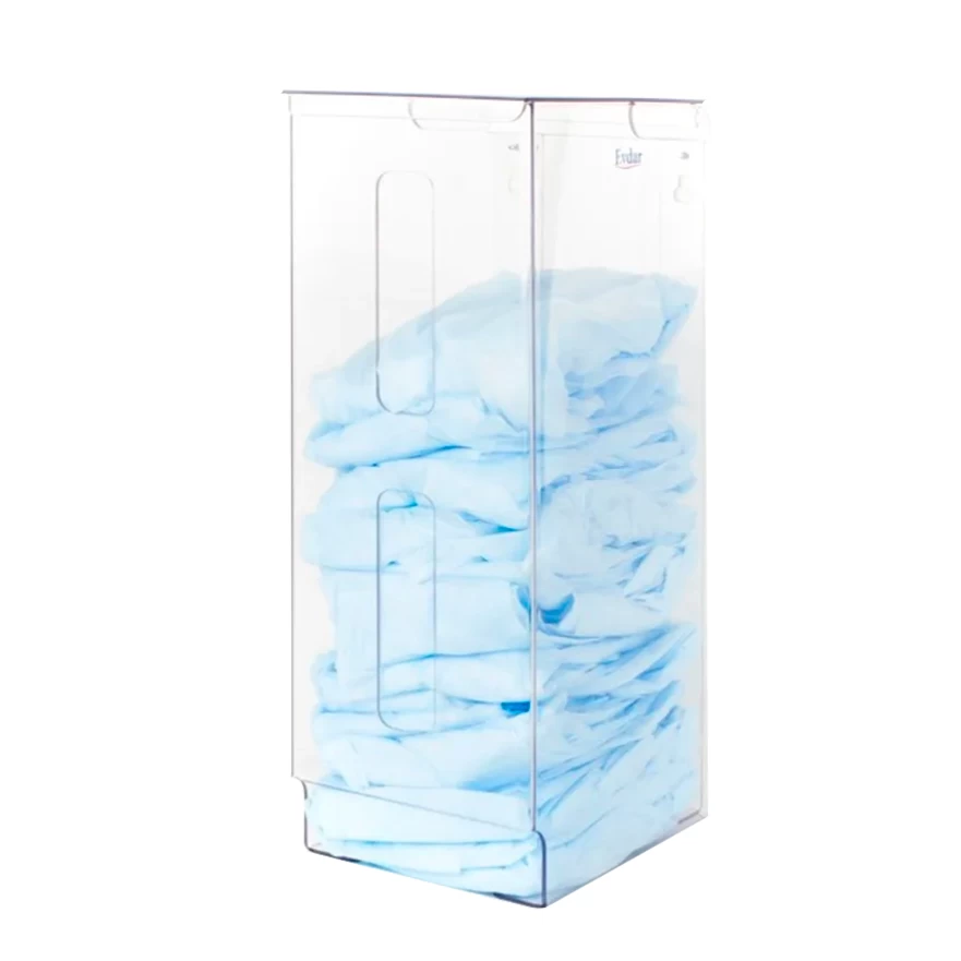 - Вместительный диспенсер вместимостью (до 100 шт.), изготовлен из ударопрочного прозрачного практичного материала, который обеспечит комфортное хранение и легкую доступность одноразовых халатов для работников или посетителей.
