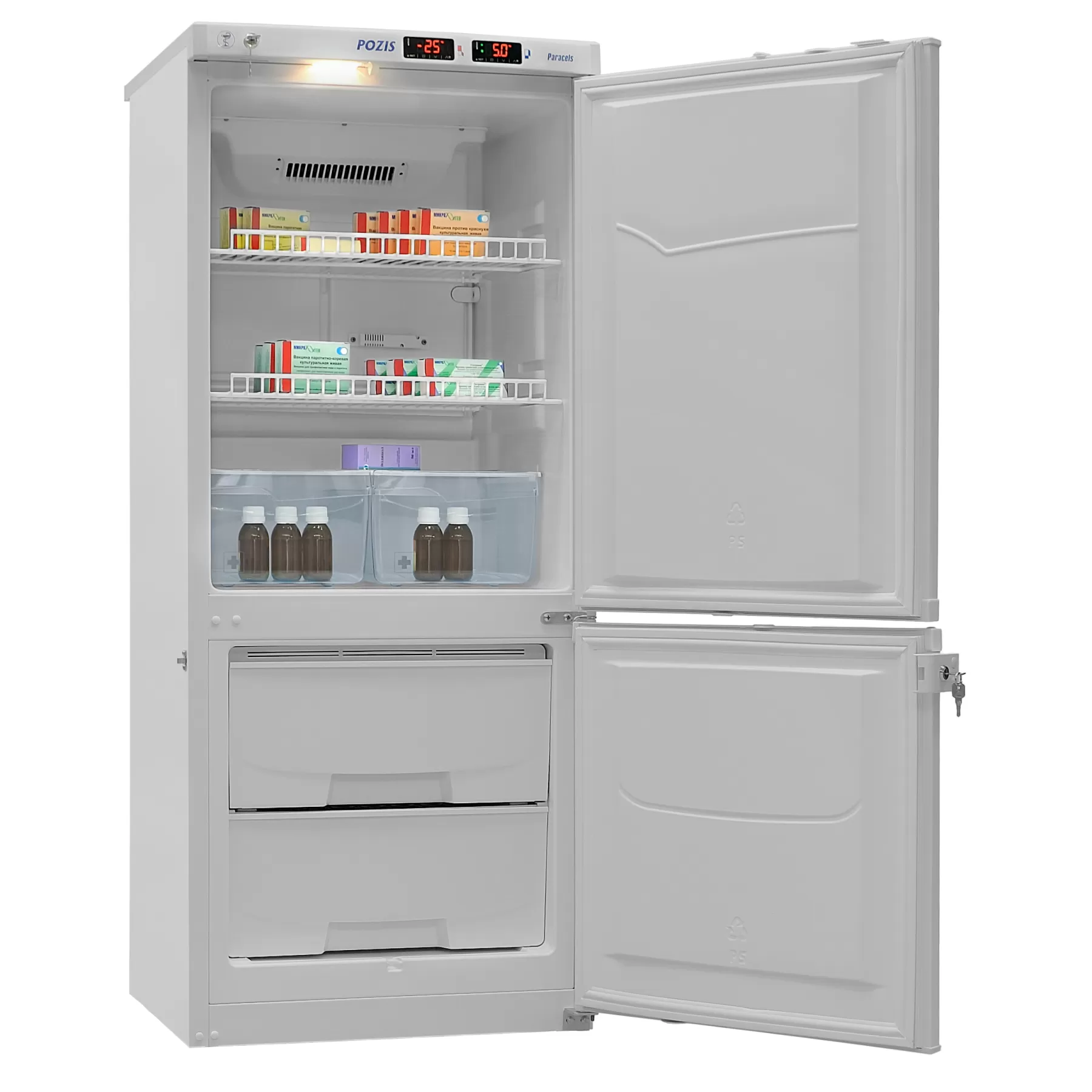 Холодильник обеспечивает потребность в хранении лекарственных препаратов, средств, образцов, тест-наборов и других фармацевтических средств при температуре от +2°С до +15°С в холодильной камере и при температурах от минус 10°С до минус 25°С в морозильной камере.
