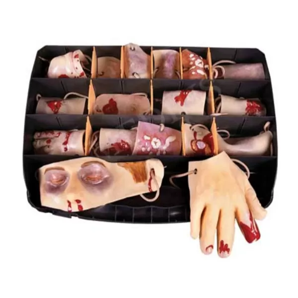 Набор имитаторов ранений и опражений используется как на обучающихся, так и на специальных тренажера-манекенах для обучения ИВЛ.