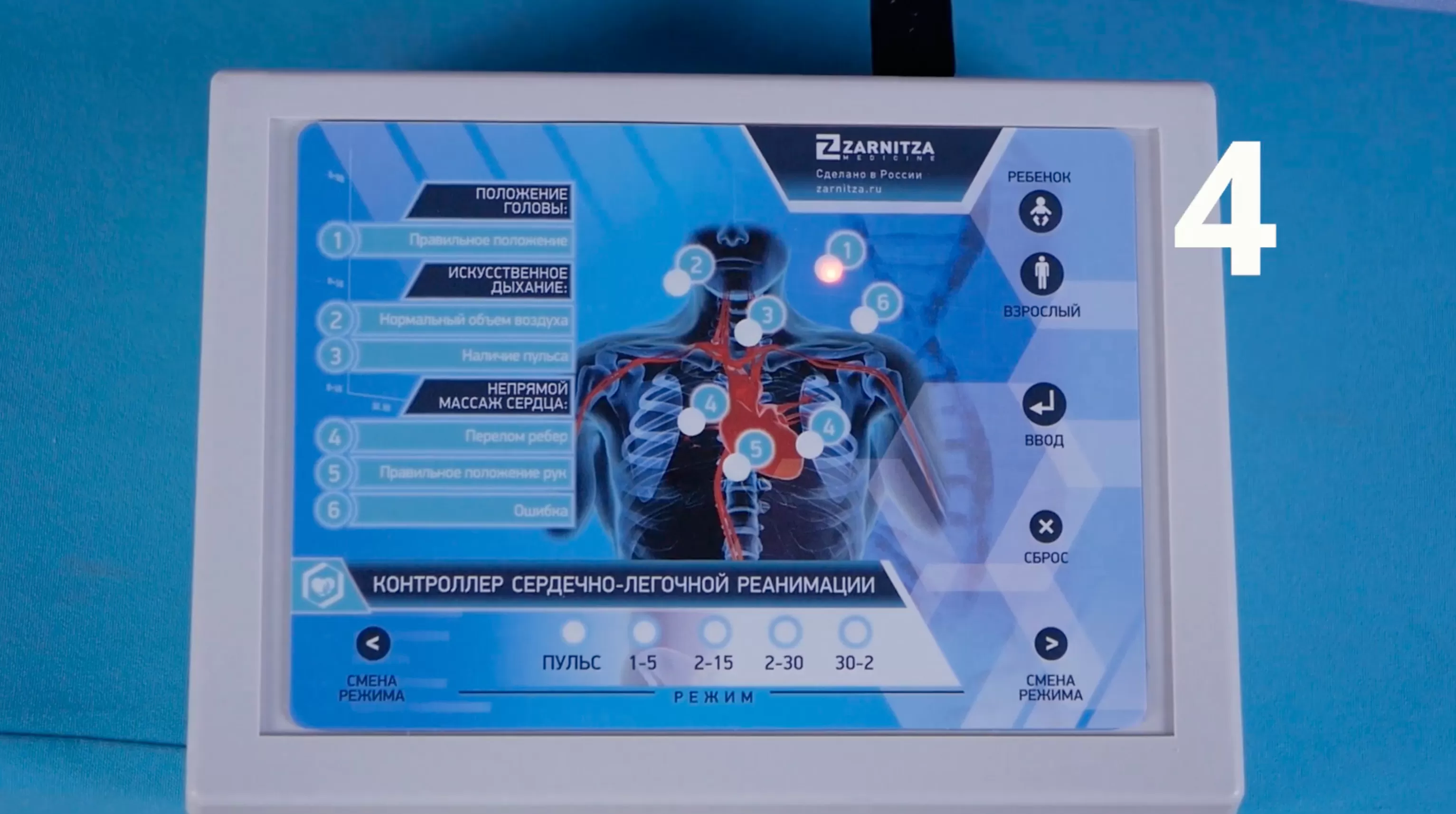 - Все манипуляции, проводимые с манекеном, фиксируются на светодинамической панели, идущей в комплекте. Светозвуковые сигналы явно дают понять о (не)правильности выполнения тех-иных действий.