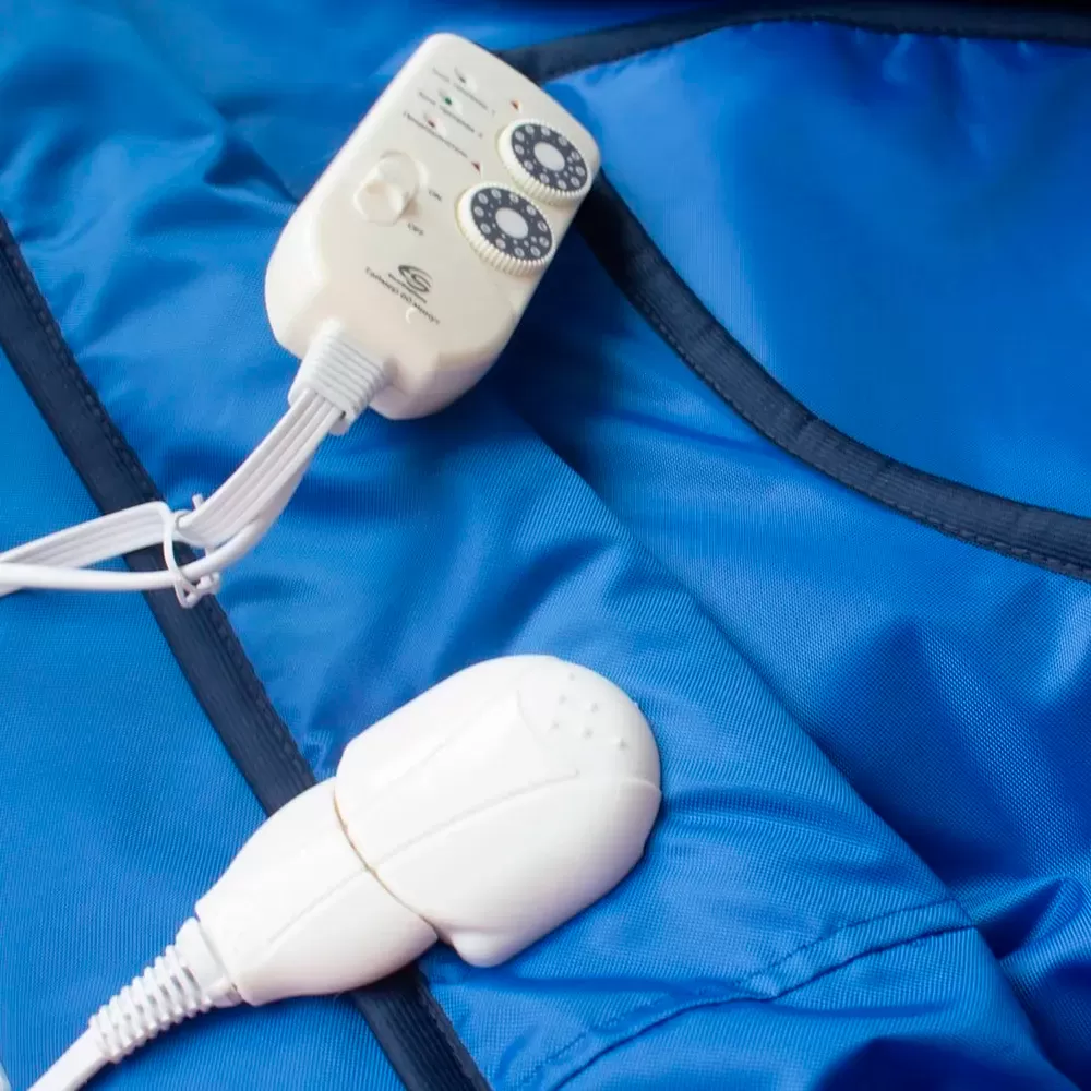- Двухзонное термоодеяло Infrasauna с 9 режимами нагрева от 35 до 65 градусов и функцией автоматического отключения.