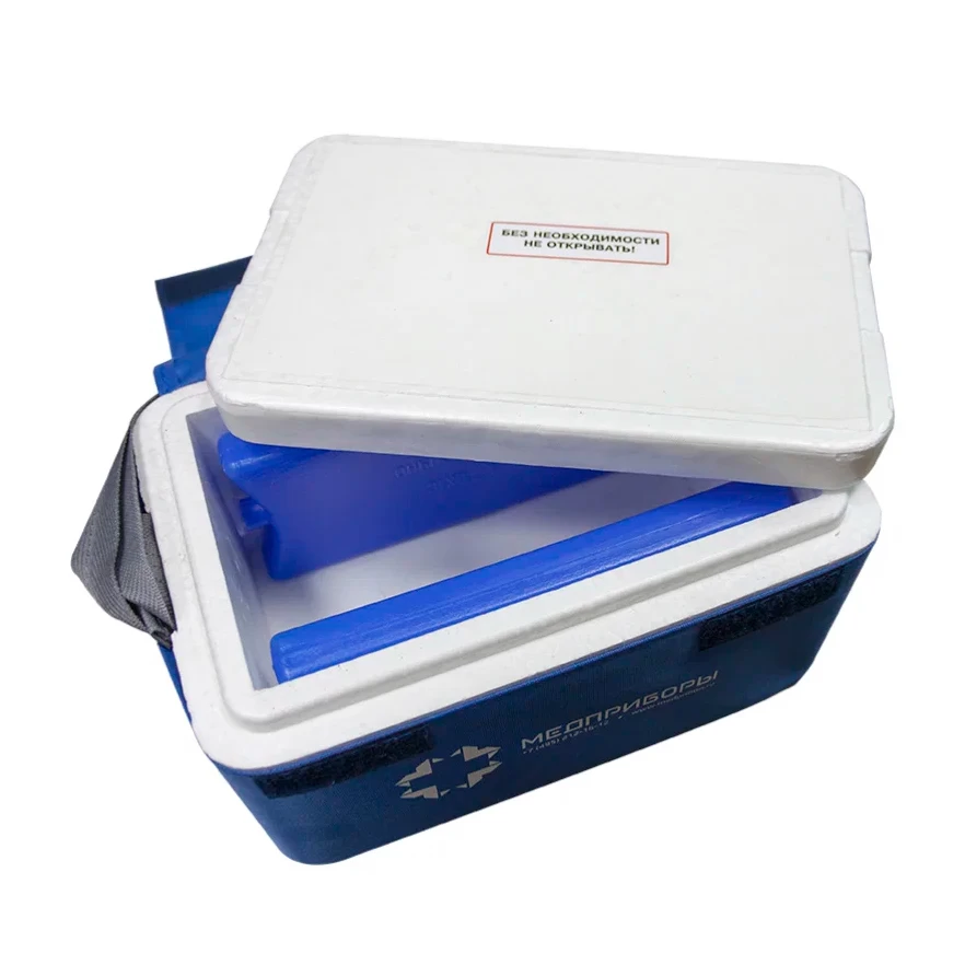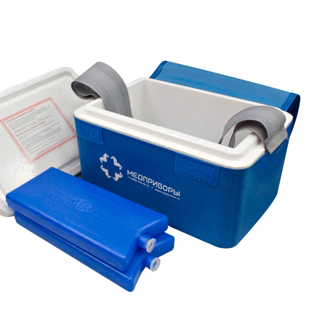 - Материалы, используемые при изготовлении термоконтейнера и хладоэлементов, не токсичны, разрешены для применения в медицинской практике и внесены в реестр медицинской техники.