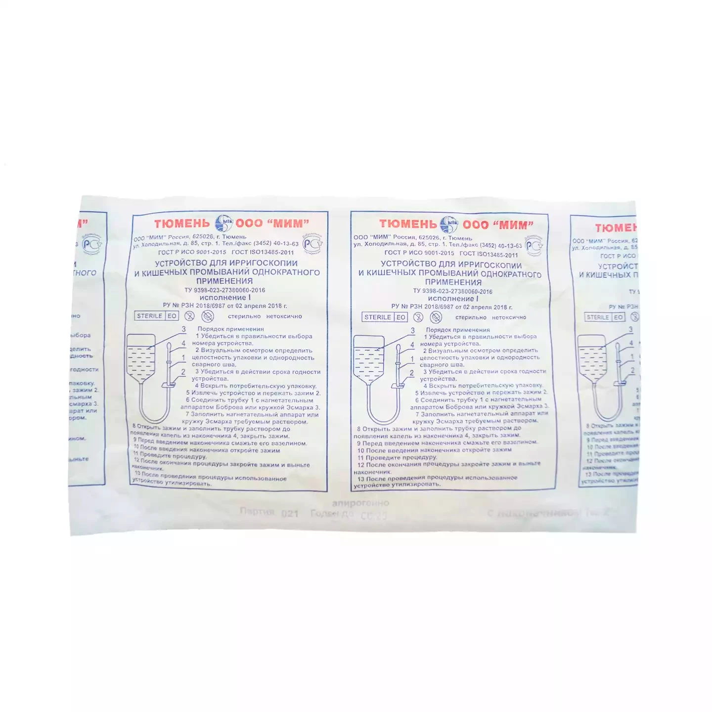 - Устройство для ирригоскопии в исполнении № 1 комплектуется полимерной емкостью и не требует в своем использовании нагнетательных и ирригационных аппаратов.