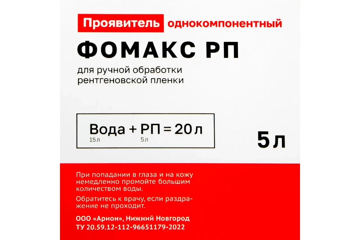 - Проявитель ФОМАКС РП представляет собой жидкий концентрат, выпускаемый в канистрах объемом 5 л.