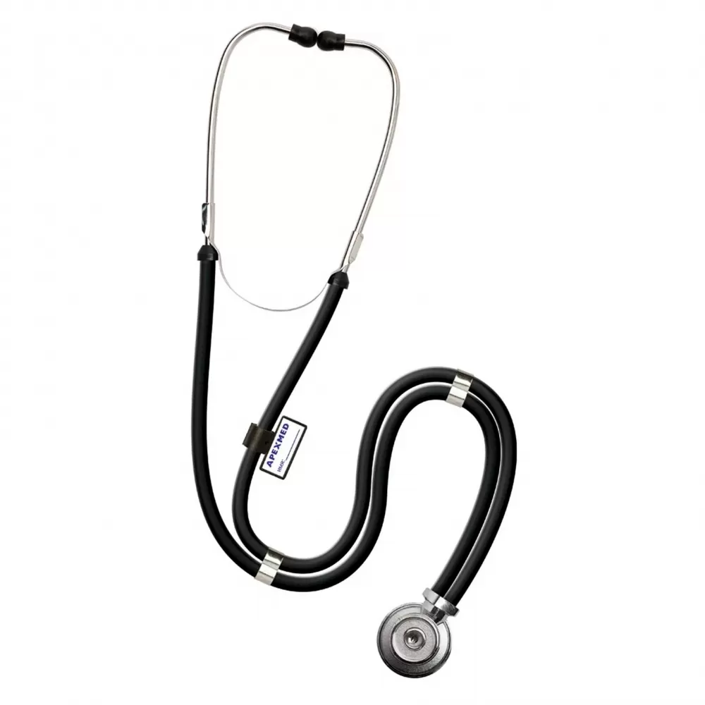- Бинауральные хромированные трубки с пружиной и пластиковыми ушными наконечниками;