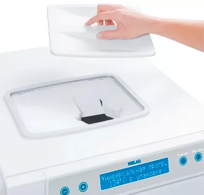 - Документирование циклов стерилизации, требуемое законодательством, выполняется через встроенный последовательный интерфейс для подсоединения к принтеру MELAprint 42 или ПК клиники. Посредством программного обеспечения MELAwin.
