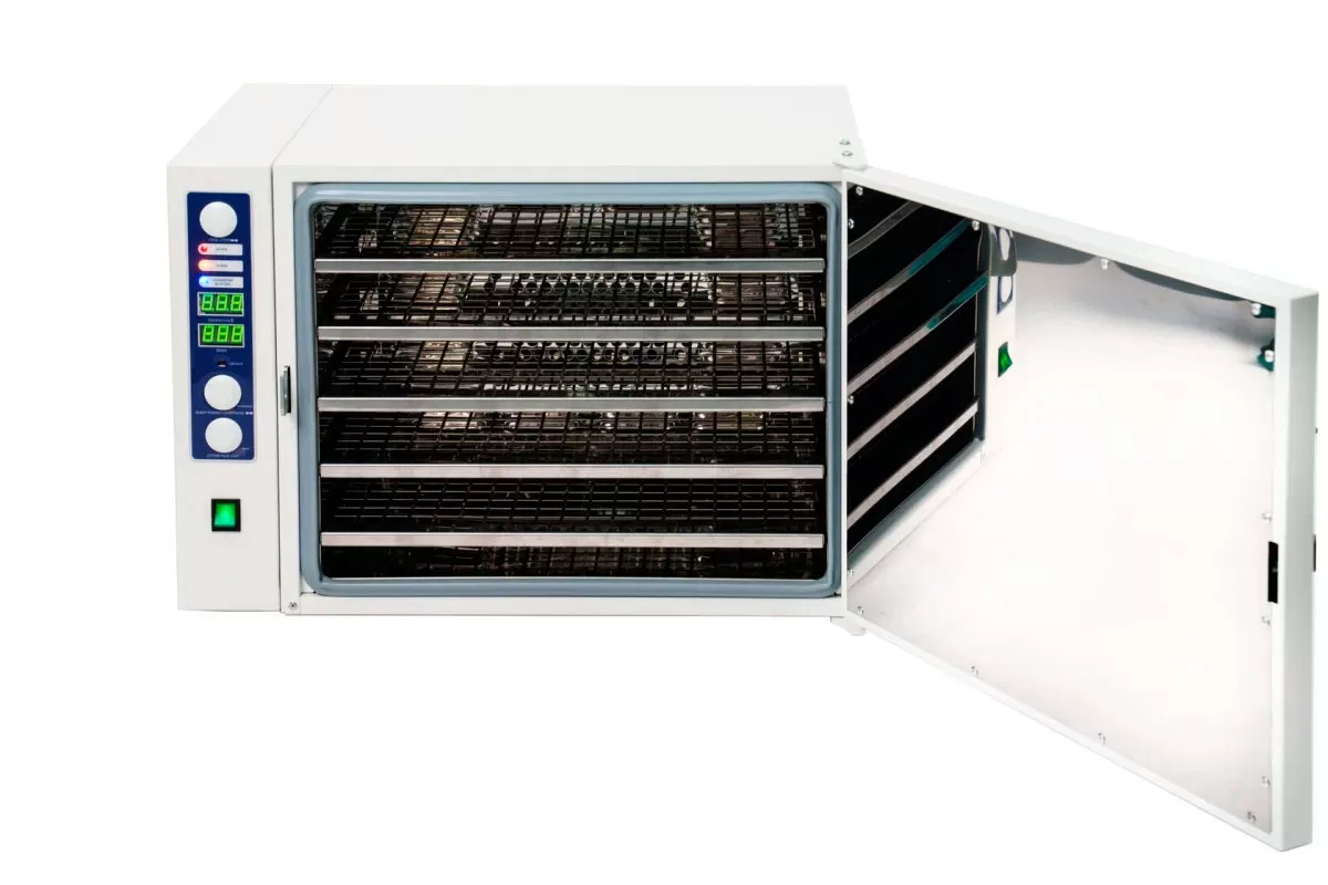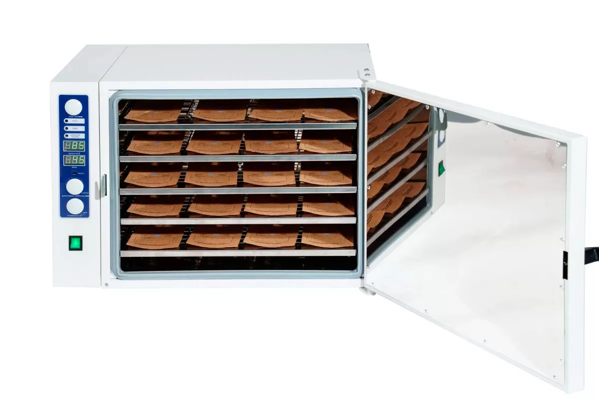 - Стерилизационная камера разработана методом компьютерного моделирования, с целью достижения максимального нагнетания воздуха, что позволяет располагать инструмент в стерилизационной камере на 5 полочках одновременно.