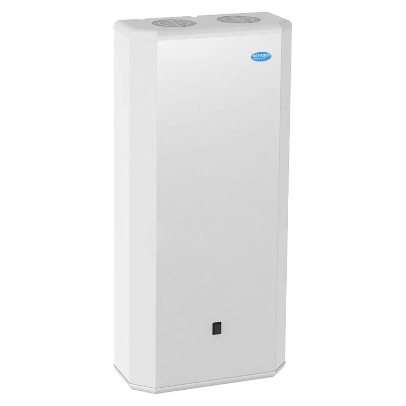 Безопасен при использовании в присутствии людей. Обеззараживание воздушного потока происходит в процессе его принудительной циркуляции через металлический корпус при помощи 2 вентиляторов. Внутри корпуса размещены 2 лампы по 15 Вт - безозоновые бактерицидные низкого давления МЕГИДЕЗ. Ультрафиолетовое излучение ламп уничтожает болезнетворные микроорганизмы, и чистый обеззараженный воздух после циркуляции по лабиринту воздуховода возвращается в помещение. Для свободной циркуляции воздуха рециркуляторы рекомендуется размещать на стене или на передвижной платформе.