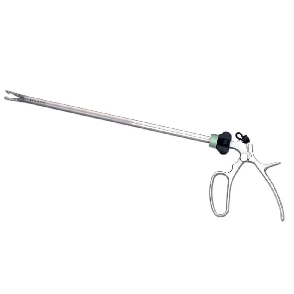 - Длина ствола клипаппликатора - 33 см, изогнутые бранши с атравматическими закругленными краями.