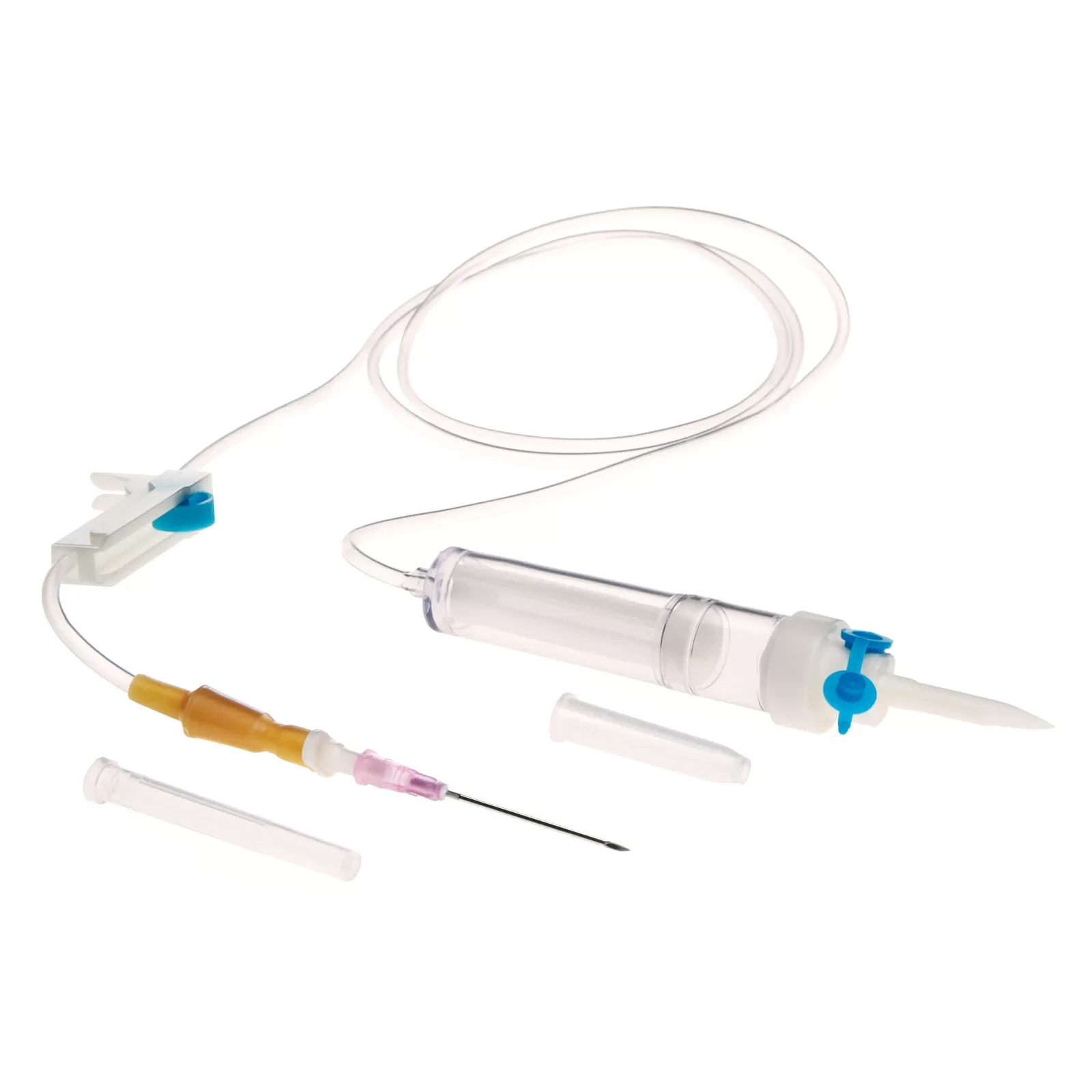 - гибкий шланг длиной 150 см с роликовым регулятором скорости потока и безлатексной вставкой для впрыска во время инфузии,