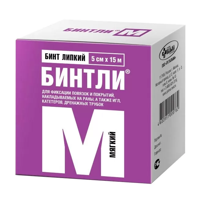 Липкий бинт БИНТЛИ – современный пластырь, предназначенный для закрытия послеоперационных ран, фиксации повязок, а также игл, катетеров, дренажных трубок и т.п.