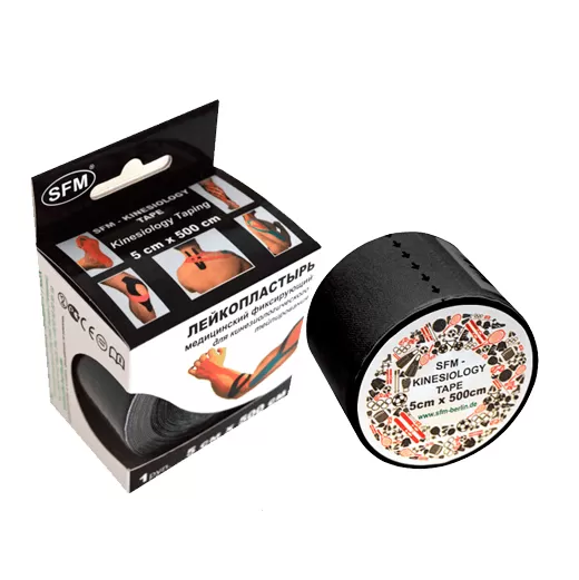 Фото Кинезиологический тейп SFM основа 5 см 5 м чёрный Кинезиологические тейпы купить в Дезнэт