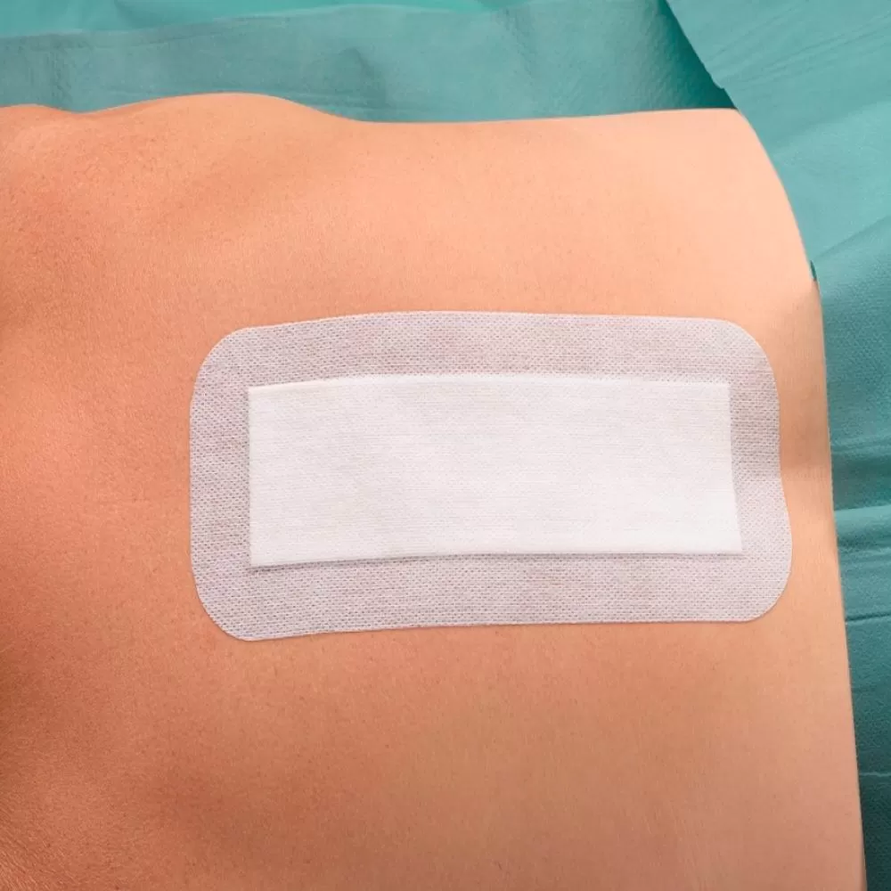 - Самоклеящаяся повязка на рану из мягкого нетканого материала с впитывающей подушечкой и с микросетчатым слоем, не приклеивающимся к ране обладает высоким уровнем абсорбции
