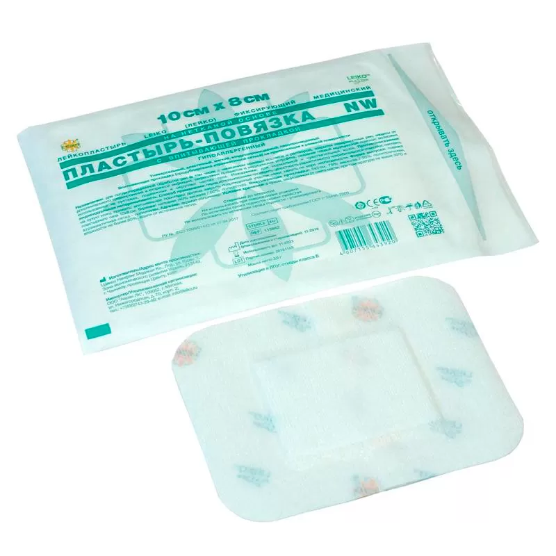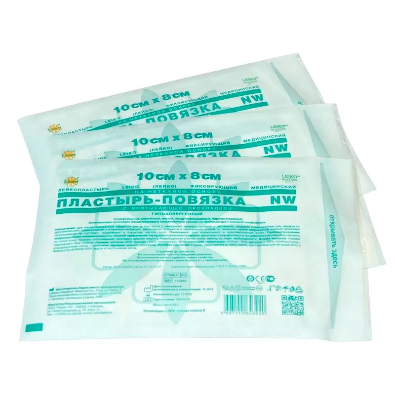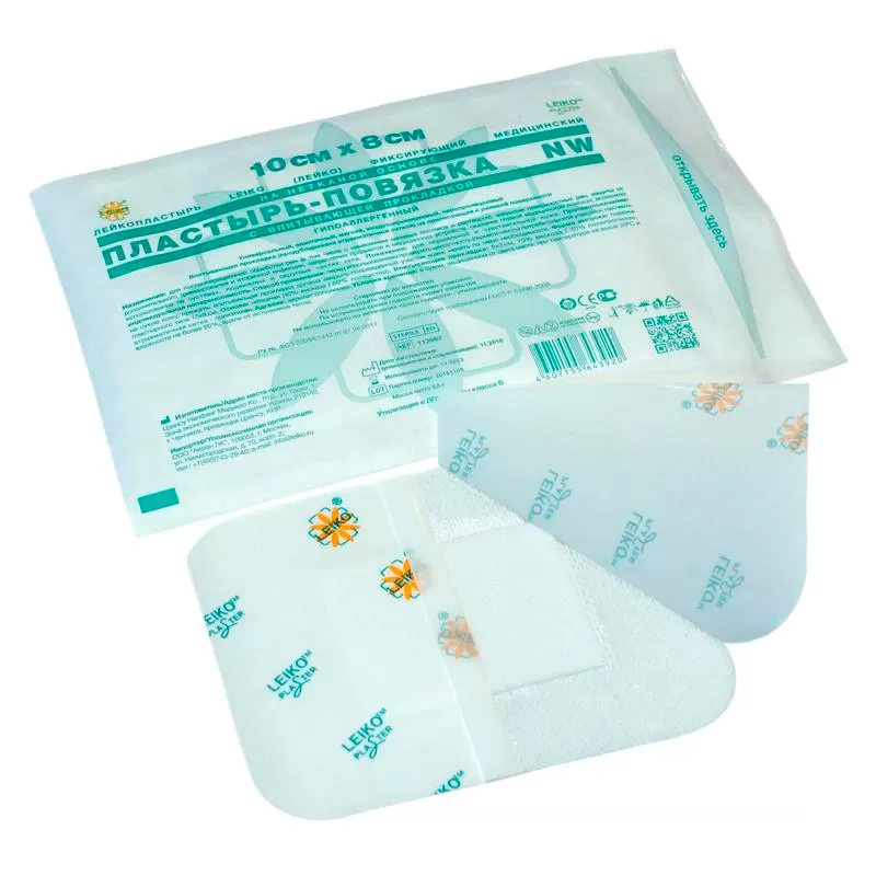 - Лейкопластырь Leiko фиксирующий медицинский на нетканой основе, пластырь-повязка NW, с впитывающей прокладкой, гипоаллергенный.