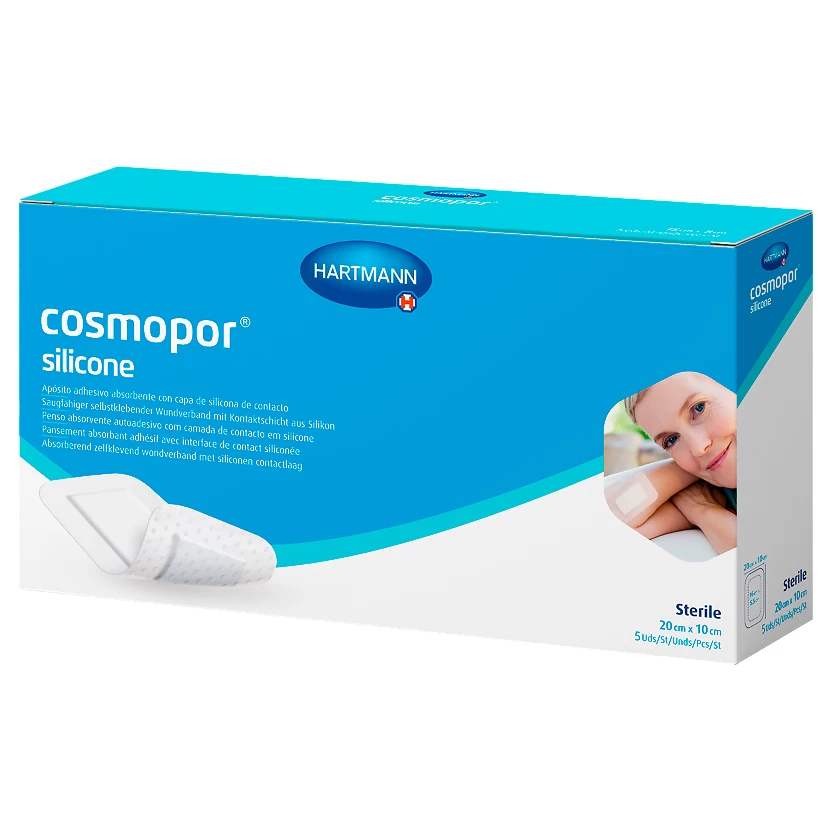 - Cosmopor silicone представляет собой неактивную одноразовую самоклеящуюся стерильную и полупроницаемую повязку на рану (гидроцеллюлярную тонкую повязку), состоящую из нетканого материала основы (материала-носителя) и впитывающей подушечки для раны.