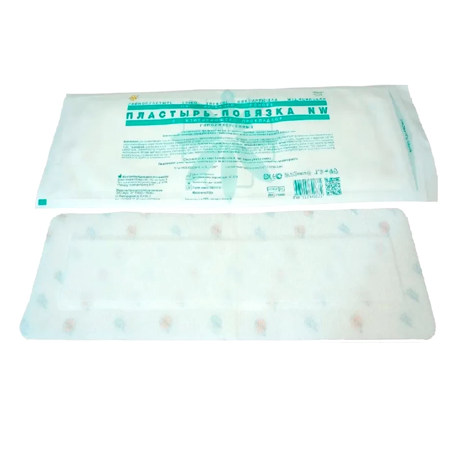 - Лейкопластырь LEIKO (ЛЕЙКО) фиксирующий медицинский на нетканой основе, пластырь-повязка NW I.V., с впитывающей прокладкой, гипоаллергенный.