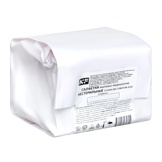 - Салфетки изготовлены из высококачественной отбеленной хлопчатобумажной медицинской марли.