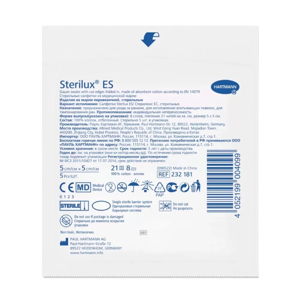 - Изготовлены из впитывающей хлопчатобумажной марли в соответствии со стандартом EN 14079, 17 нитей, сложенные, с подвернутыми краями;