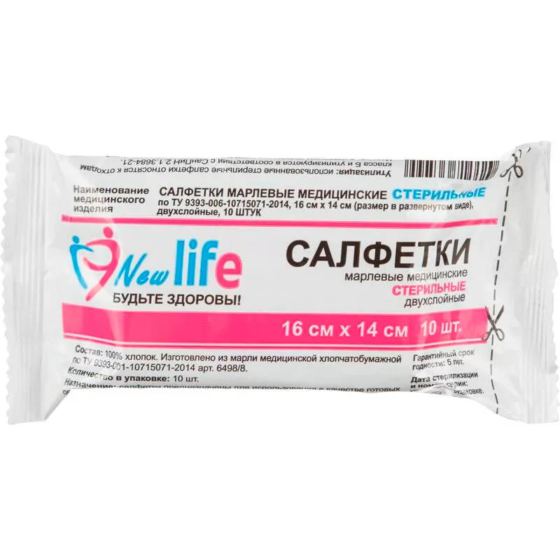 - Стерильные марлевые салфетки изготовлены из отбеленной хлопчатобумажной медицинской марли.