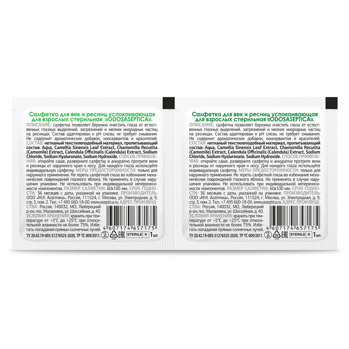 - Состав: Нетканый текстилеподобный материал, пропитывающий состав: Aqua, Camellia Sinensis Leaf Extract, Chamomilla Recutita (Camomile) Extract, Calendula Officinalis (Calendula) Extract, Sodium Chloride, Sodium Hyaluronate, Sodium Hydroxide.