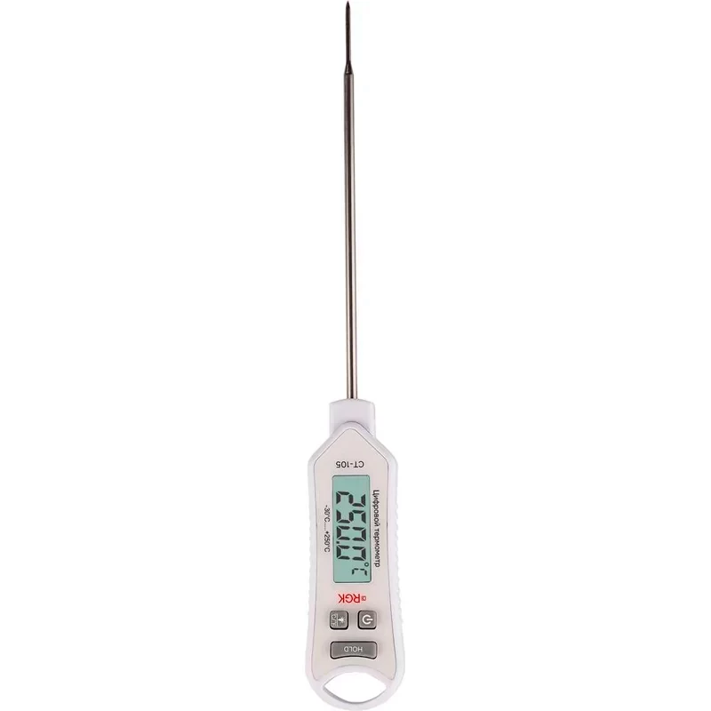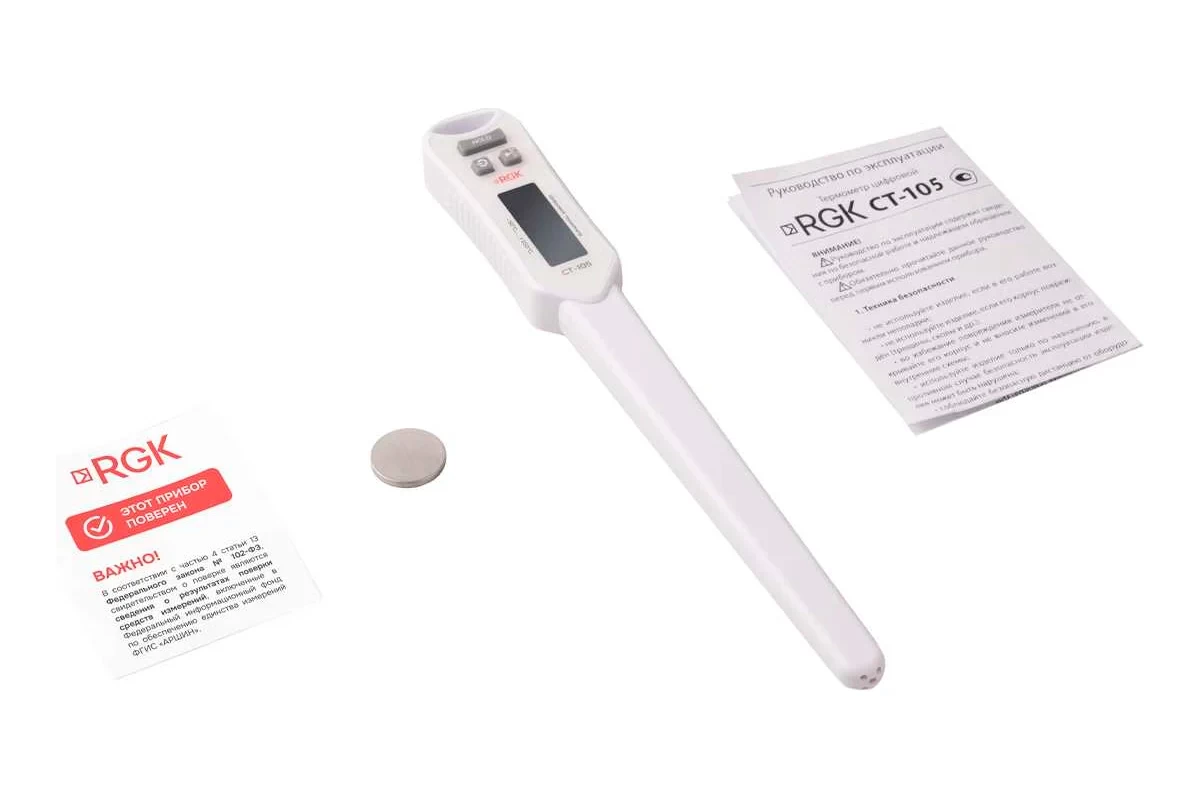 - Термометр цифровой RGK CT-105 представляет собой компактный измерительный прибор в моноблочном исполнении.