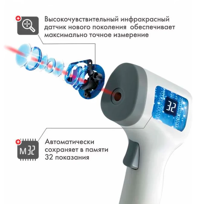 - Высокочувствительный инфракрасный датчик нового поколения обеспечивает максимально точное измерение.