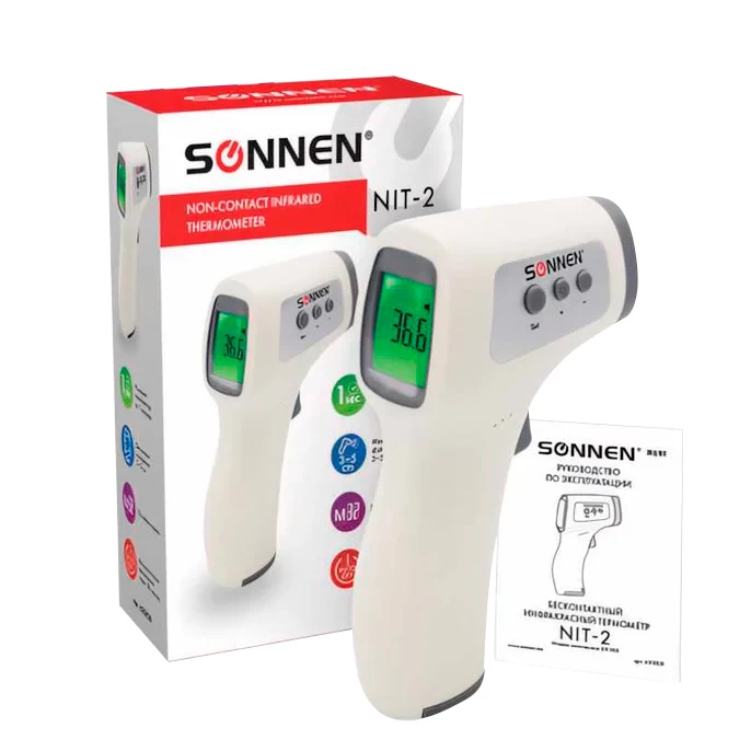 - Бесконтактный электронный инфракрасный термометр SONNEN NIT-2 GP-300 630829 определяет температуру тела человека, объекта или жидкости на дистанции и без контакта за 1 секунду. Прекрасно подойдет для обследования большого количества людей.