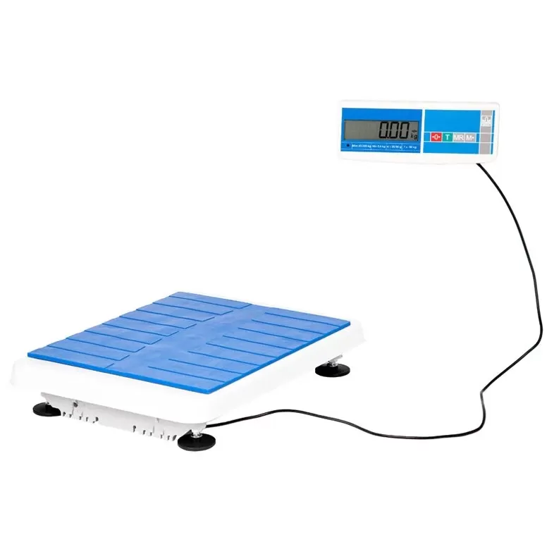 - Индикатор соединен с весами кабелем (5м, индикатор может располагаться в удобном месте, предусмотрена возможность крепления к стене.