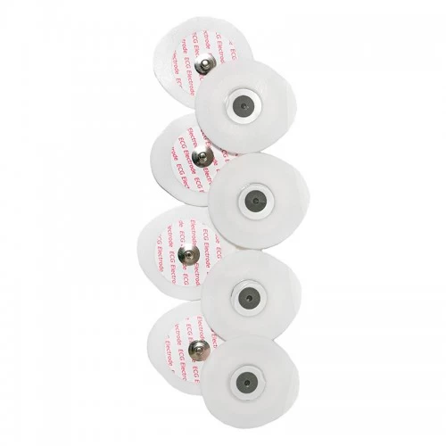 - Электроды для ЭКГ одноразовые состоят из металлического коннектора (Медно-никелевый сплав (CuNi)) в виде «кнопки» с уплотнительным кольцом на прилегающей к нему поверхности; и основы электрода (Пенополиэтилен (PE foam)) различной формы с клеящей поверхностью из акрилового клея, эта поверхность до применения по назначению закрыта защитной пленкой.