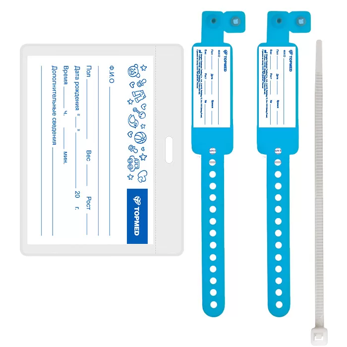 - Полоска для информации о новорожденном на браслете и на медальоне.