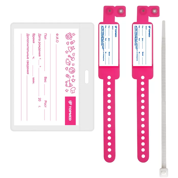 - Полоска для информации о новорожденном на браслете и на медальоне.