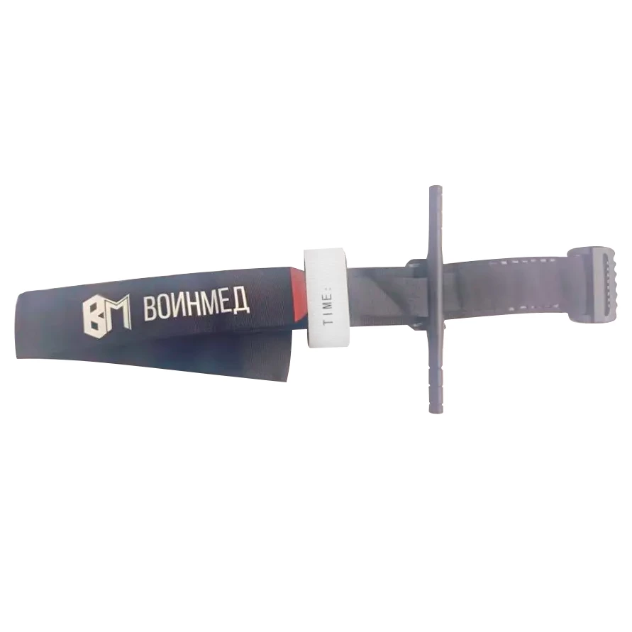 - фиксация пряжки текстильной, липкой лентой (содержащей поле для ввода даты и времени нанесения жгута).