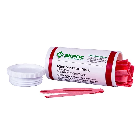 - Индикаторная бумага конго красная является аналогом индикаторной бумаги лакмусовой синей, отличается более интенсивным цветом индикации. Применяется в реакциях нейтрализации, а также для определения наличия молочной кислоты в культуральной среде, содержащей штаммы B. Coli.