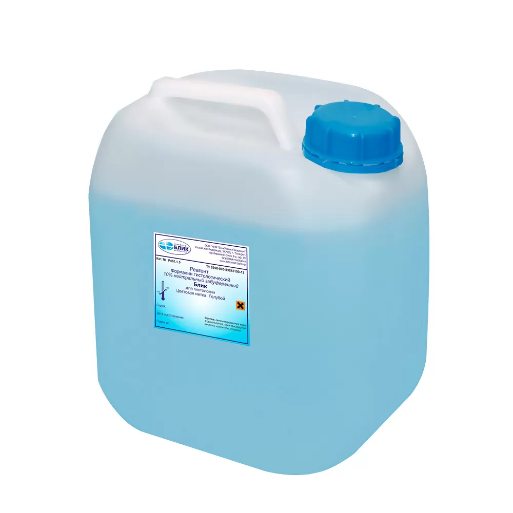 Формалин 10% нейтральный забуференный - фиксатор для всех тестов в гистологии, гистохимии, уточняющих молекулярных тестах (FISH, CISH). Имеет улучшенные физико-химические характеристики, сохраняет морфологию клеток и обеспечивает качественную фиксацию ткани, что позволяет добиться максимально достоверных результатов исследования. Качественная фиксация тканей на всех этапах - от вырезки образцов в хирургическом отделении до получения готового образца по которому можно поставить достоверный диагноз. Имеет улучшенные физико-химические характеристики, соответствующие адекватной фиксации ткани любого вида. Отсутствует резкий запах формальдегида, так как формалин Блик дезодорирован специальной парфюмерной добавкой.