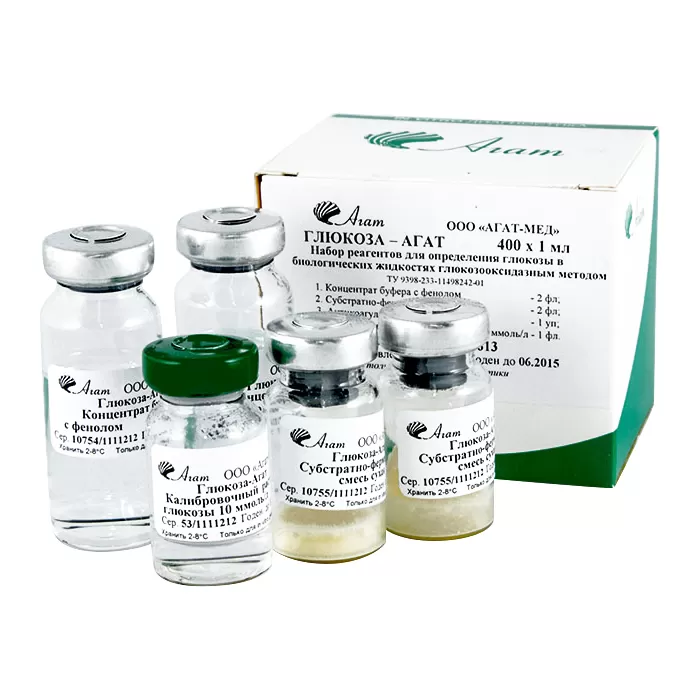- Субстратно-ферментная смесь сухая (4-аминоантипирин - 0,032 г, глюкозооксидаза - 3000 МЕ, пероксидаза - 300 МЕ) - 2 флакона.