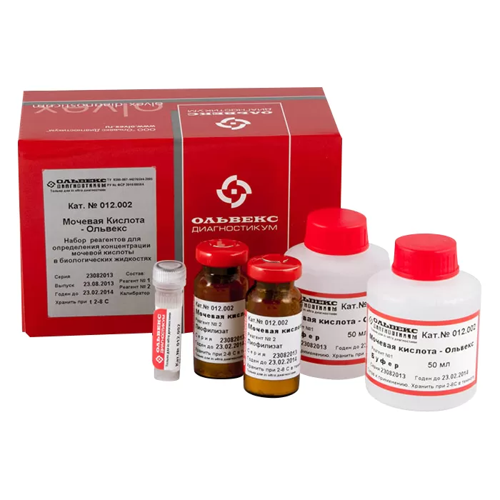 - Калибратор (калибровочный раствор мочевой кислоты 357 мкмоль/л) - 1 мл.