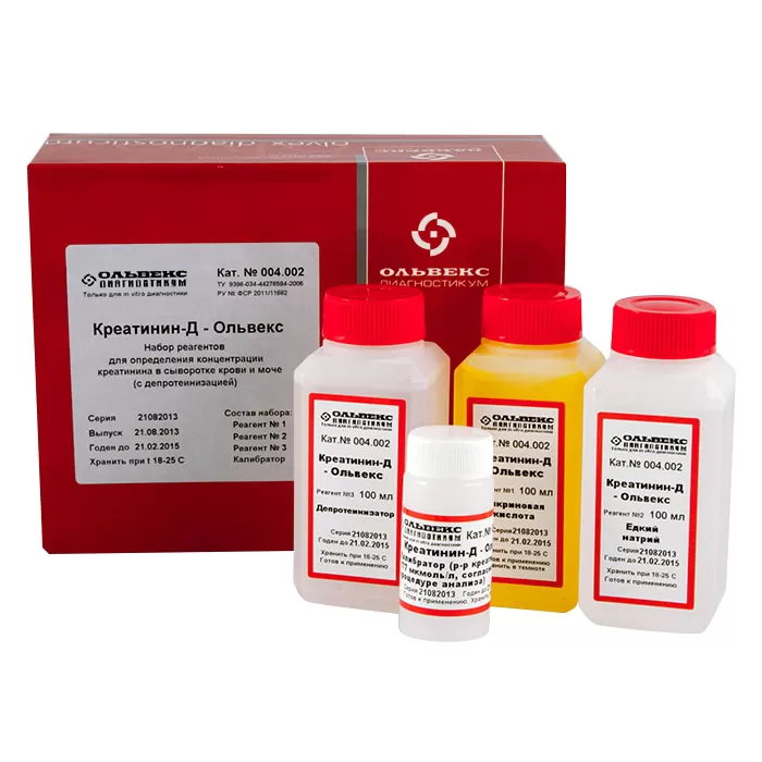 - Калибратор (калибровочный раствор креатинина 177 мкмоль/л) - 10 мл.